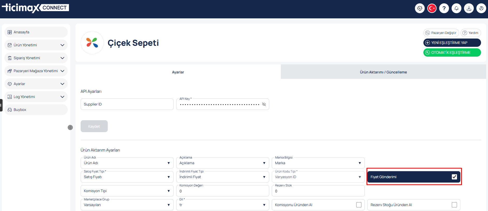 Bu sayede fiyat yönetimini tamamen kontrolünüzde tutabilir, yalnızca stokları entegrasyon üzerinden güncellemeye devam edebilirsiniz.